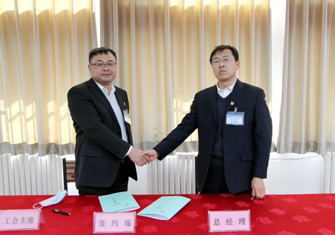 總經理郭有勁、工會主席劉紅光分別代表公司行政、工會簽訂了《2022年集體合同》。郭有勁代表公司行政與各生產所負責人簽訂了《2022年生產經營目標責任書》《安全質量環保目標管理責任書》。